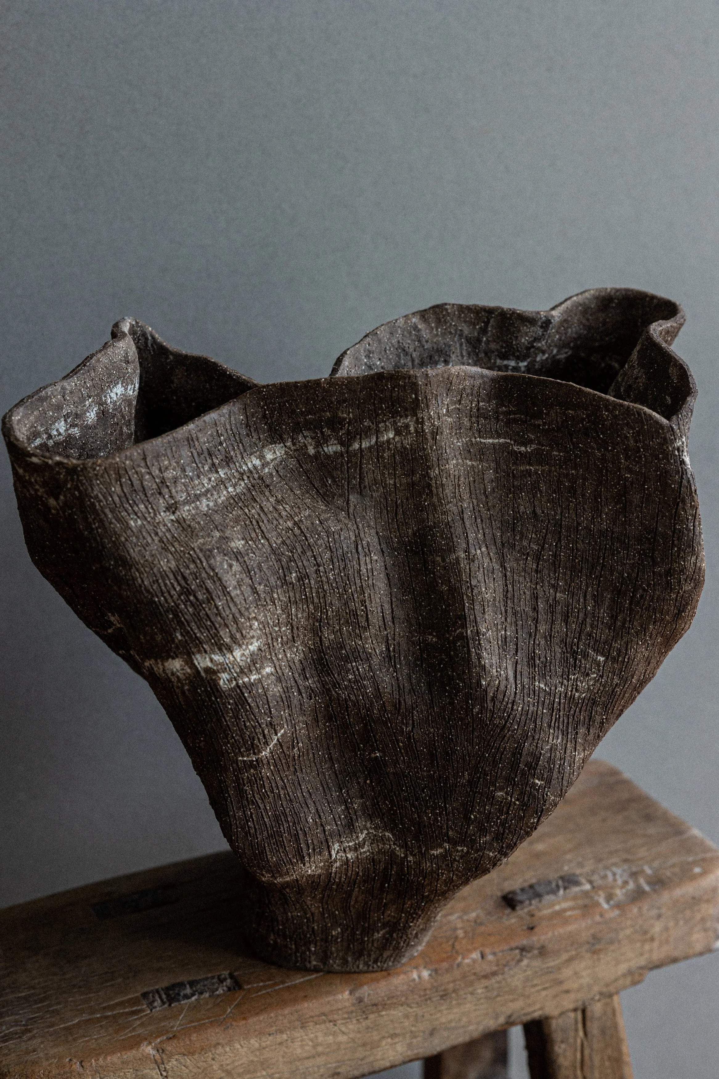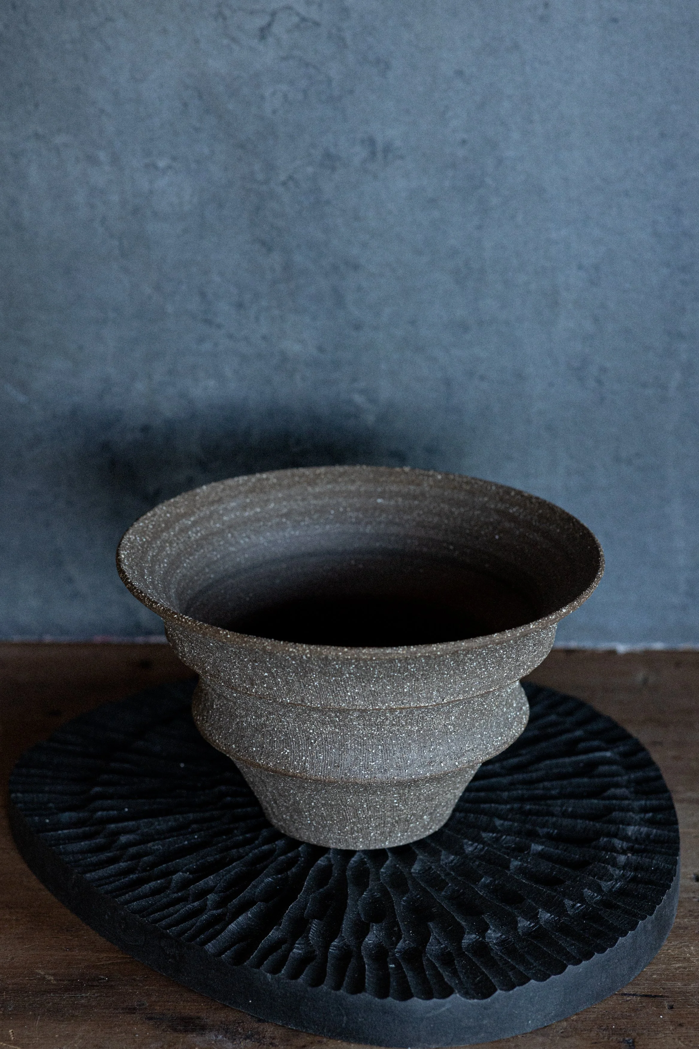 Wheel thrown vase in mixed stoneware clay. Transparent glaze inside.